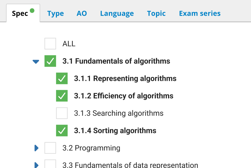 Find exactly what you need with our search tool. Target key specification areas, question types, AO, topics and more.
